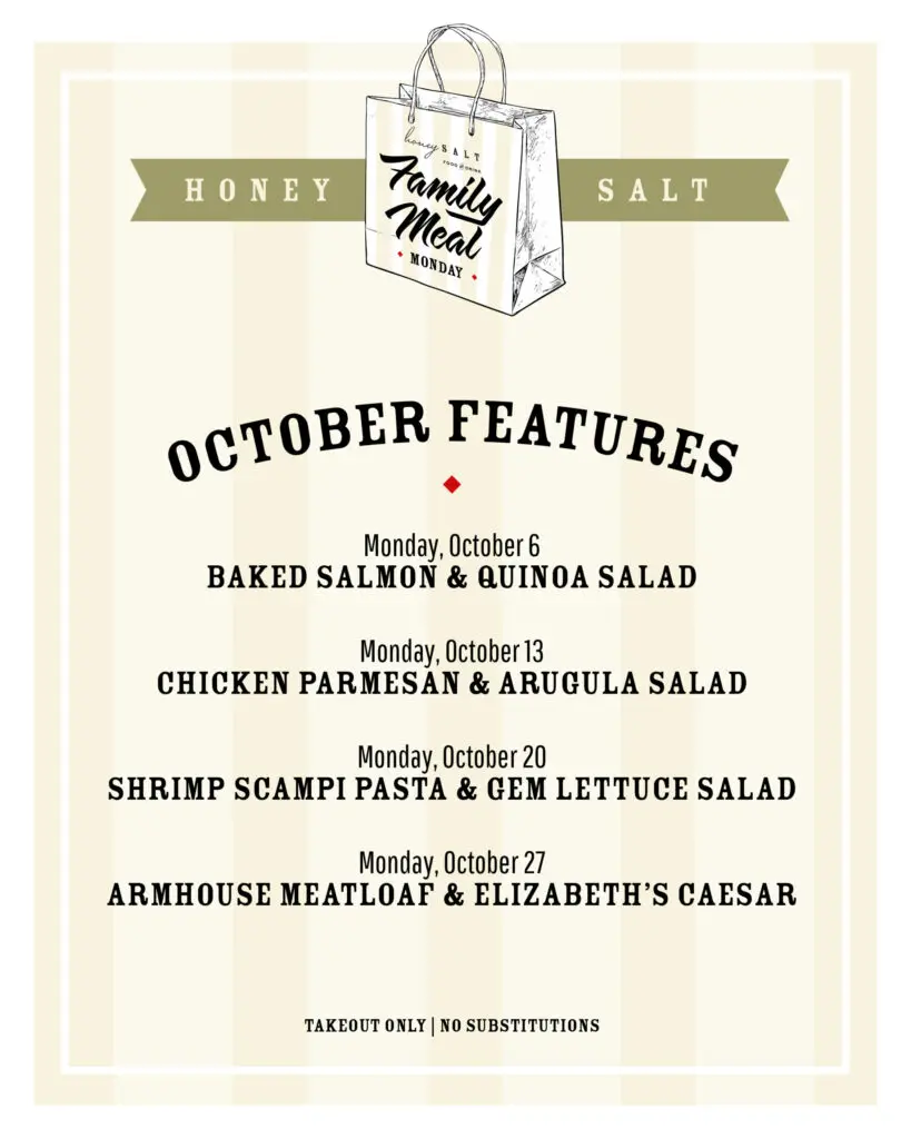 Let Honey Salt take the stress out of Monday meal planning with our Family Meal Monday takeout special, crafted to feed up to four.